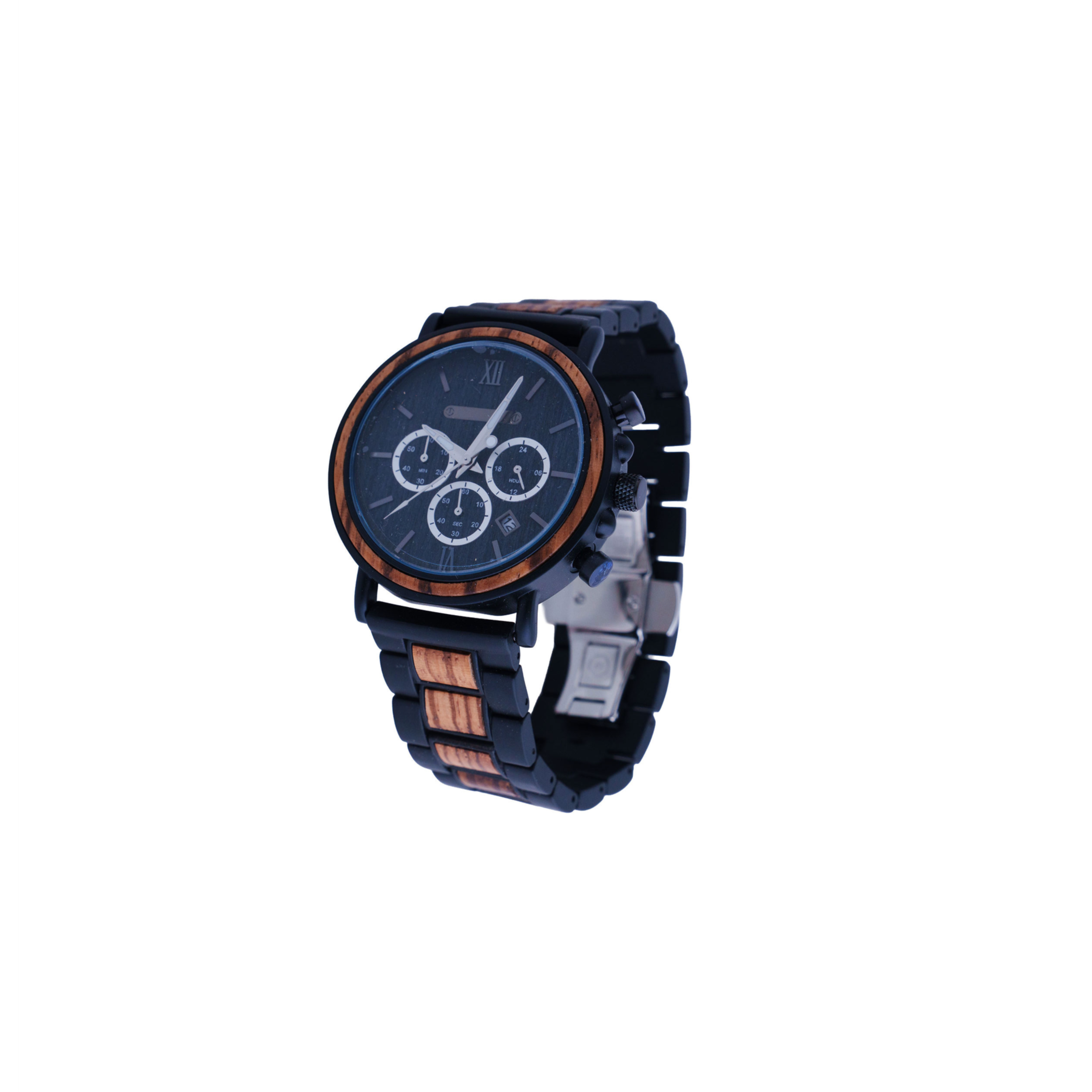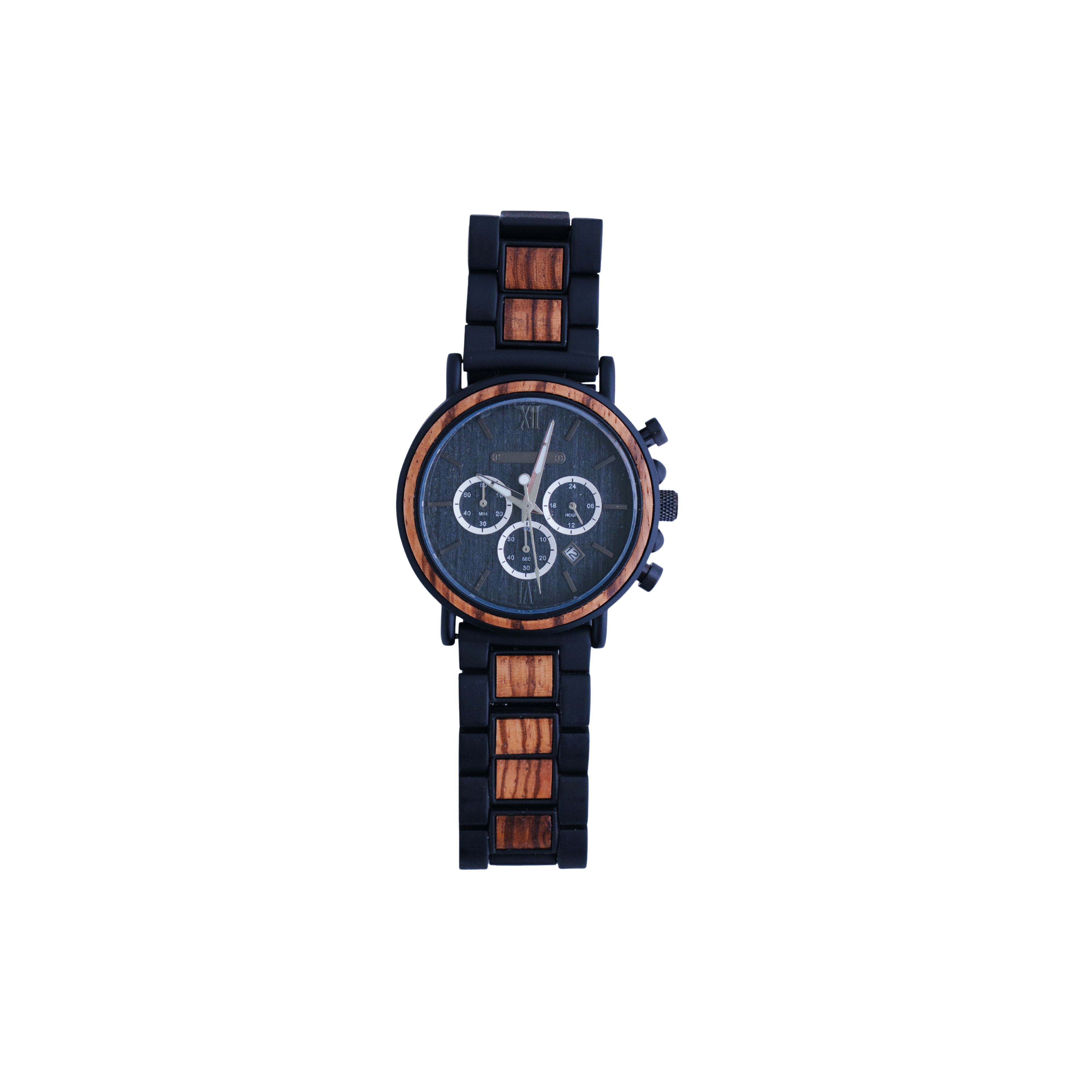 • The Chronometer Dial Metal Men’s Wood Watch Black Dial & Natural