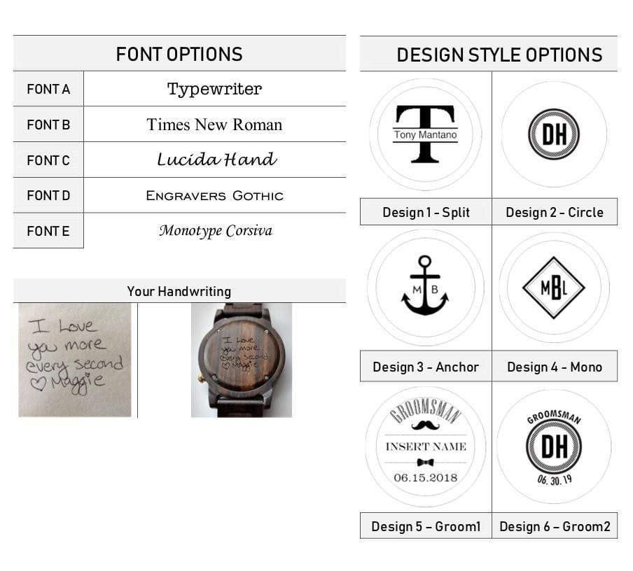 A fresh take on a classic wooden watch is sure to take your daily looks to the next level. The wood band color is a rich red and black with a vibrant green face. The look of this wooden watch is completed with a minimalist face and a date function. Engrave the back of the wood watch to make this watch truly yours!