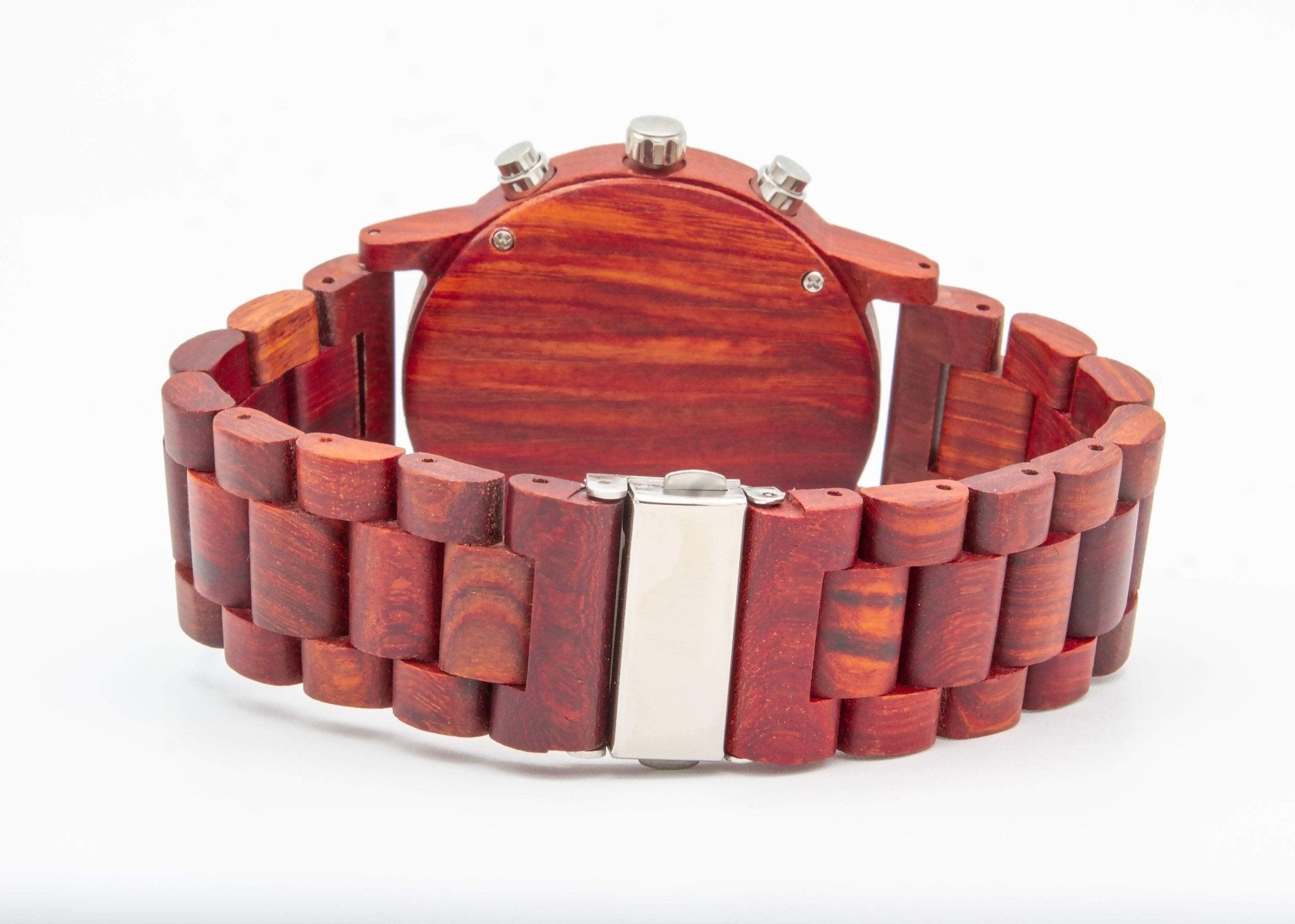 This wooden watch is ready to make a statement! Dulce | Red wood watch is the perfect way to show someone you care with its wooden frame. No two are exactly alike, making it the go-to choice for unique gifts. Combining style, sentiment, and sustainability in one, it's a gift that keeps on giving.